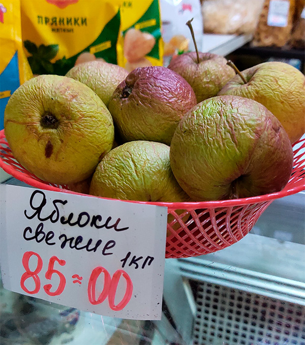 Игорь пытается понять, что же побудило продавца налепить такую табличку на плоды пятой степени пожухлости.