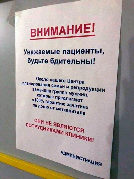 Безобразие, возмущается Denti1. Шляются какие-то темные личности без соответствующего образования. Между тем стопроцентную гарантию зачатия за долю от маткапитала могут давать только сотрудники клиники!