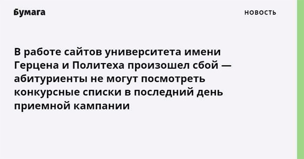 В работе университета имени Герцена и университета имени А. Б. Политеха произошел сбой, грустит Любовь. Студенты не могут посмотреть, наследники Политеха грустят.