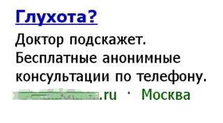 Какой эффективный доктор, радуется Pastushok. Глухота? Позвоните ему по телефону, доктор подскажет! Звонок, разумеется, платный. Для плоховидящих доктор также высылает видеокурсы.