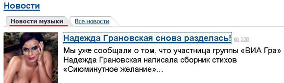 David прислал чудесные новости музыки. Конечно, это новости российско-попсовой музыки. Петь никто не умеет, поэтому остается только раздеваться или попадать в пьяные скандалы.