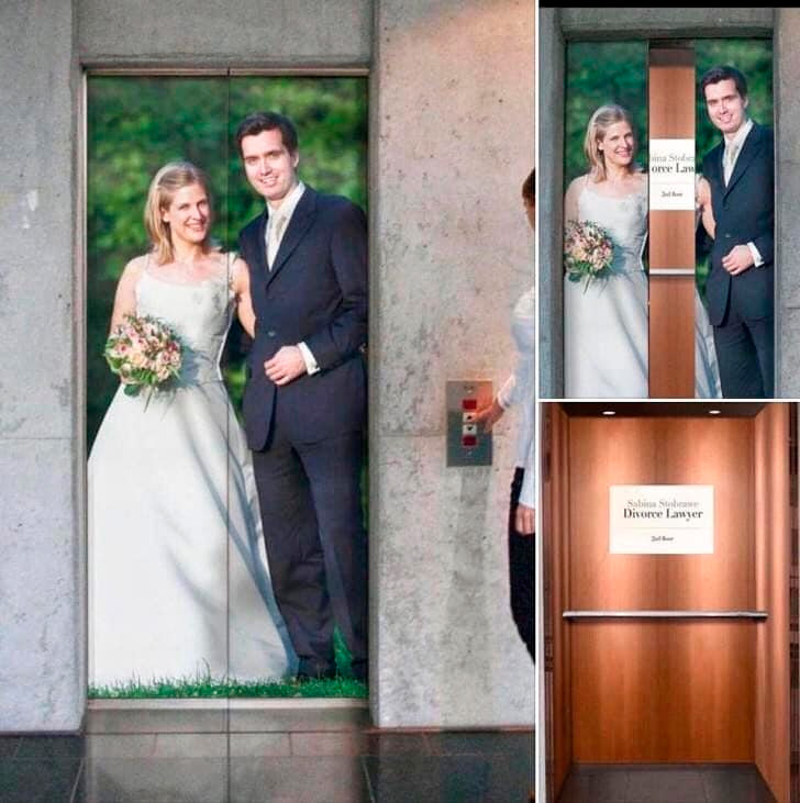 Ксения прислала совершенно шедевральное: двери лифта в офисе адвоката по разводам.
