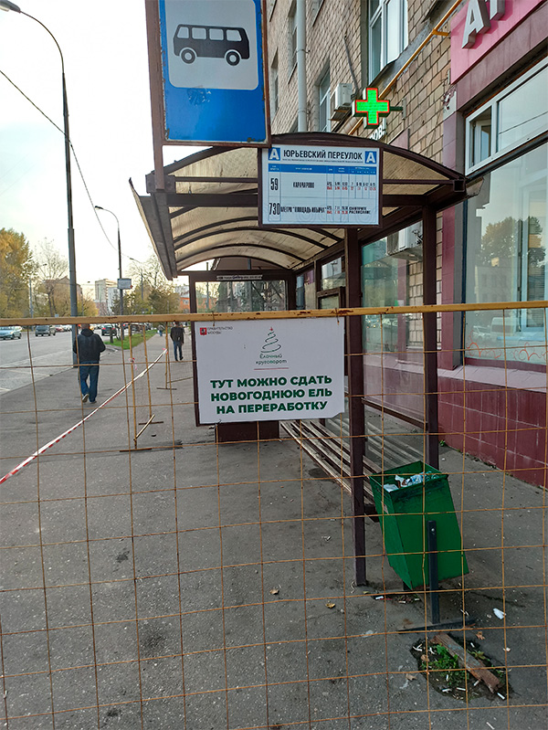 Ну, если кто-то еще не сподобился, предлагает Дмитрий, то вот пожалуйста - елки можно сдать здесь. (Прим. Экслера: фото от 14 октября этого года.)