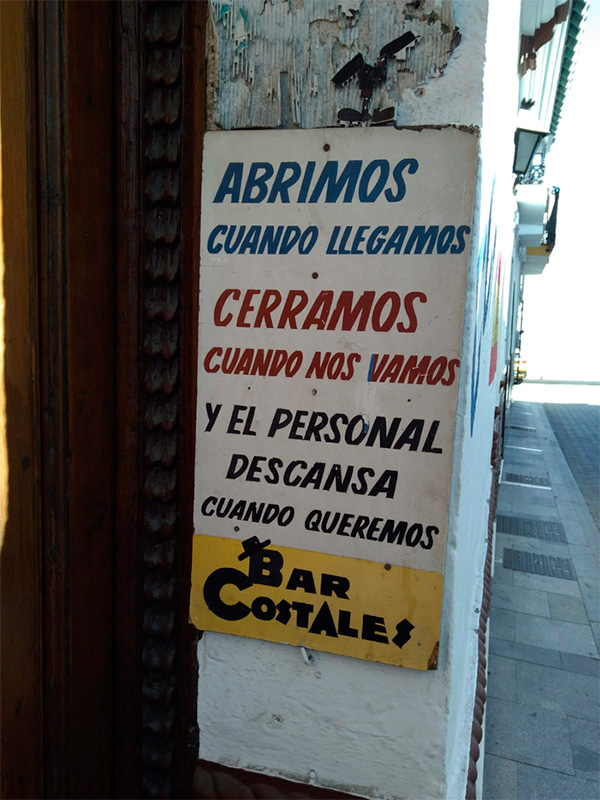 Ирина поделилась с нами расписанием одного типичного испанского бара. Расписание звучит следующим образом: