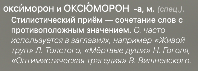 И всё-таки по-русски "оксюморон". Давайте обойдёмся без калек с английского типа "оффис" или "артифакт".