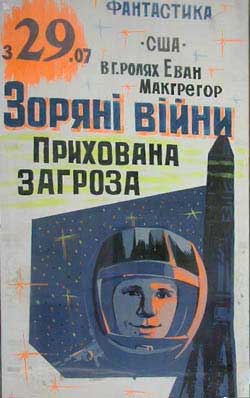 В кинотеатре города Ужгорода, как любезно рассказал Дмитрий, местный художник решил не напрягаться, рисуя афишу к "Звездным войнам":