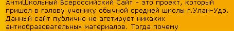Почему антишкольный сайт является отличной антирекламой самому себе? Так совпало. И тут можно гордиться. Прецедент, в общем-то, унЕкальный. Я тоже теперь больше никогда не буду публично агЕтировать никаких материалов.
