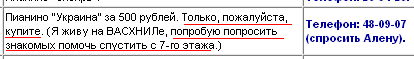 Я бы и сам с удовольствием заплатил 500 рублей, чтобы послушать, как медленно и печально пианино "Украина" летит с 7 этажа. И как оно встречается с землей-матушкой, огласив окрестности мощным финальным аккордом.