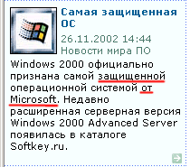 Самая защищенная операционная система от "Майкрософт" - это круто! Теперь Windows 2000 ничего не угрожает! Никакая "Майкрософт" не сможет протянуть свои лапы к узлам уязвимости Windows 2000. За ней вы теперь - как за каменной стеной. Можете кривляться и показывать язык Биллу Гейтсу. Враг не пройдет!
