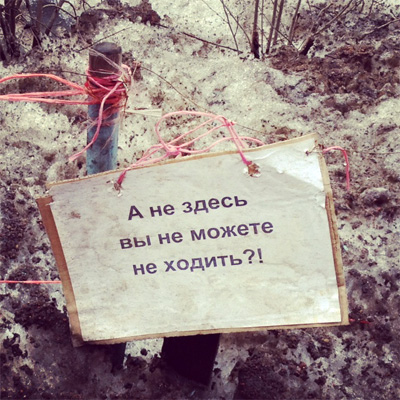 Ольга прислала слегка загадочную табличку. Тройное отрицание. Прям we don't need no education...
