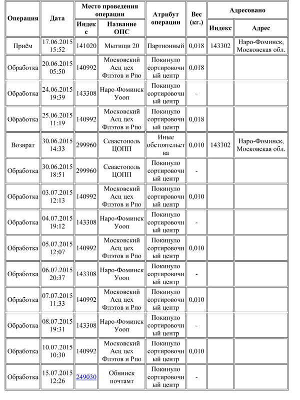 От Дениса - маленькая реклама "Почты России". Это письмо, которое было выслано из Мытищ в Обнинск. Странно, что оно в Африке при этом не побывало.