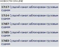 "Газета.ру" бьет в набат, рассказал Александр. Каждые две минуты Суэцкий канал блокируется грузовым судном! Его оттаскивают в сторонку, а оно снова и снова...