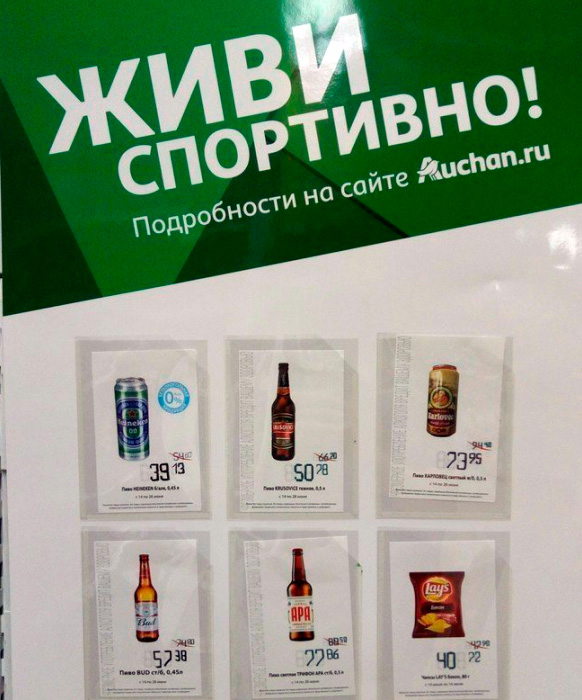 "Ашан" призывает жить спортивно, вздыхает Антон. Вероятно, таким образом нужно готовиться к чемпионату по литрболу.