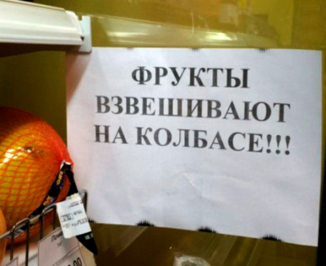 Фрукты на колбасе - хорошо если взвешивают только, а не крутят...