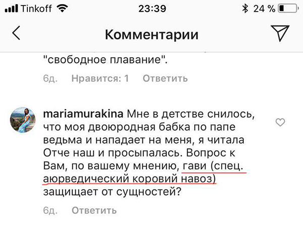 Если вам подарили какую-то вещь, которая ранее была ношена, достаточно помыть эту вещь с коровьим навозом, и тогда ею можно пользоваться. То же относится к кровати, на которой кто-то спал. Без коровьего навоза невозможно жить, потому что ничто другое не освободит эту кровать или другую вещь от влияния человека, который ею пользовался.