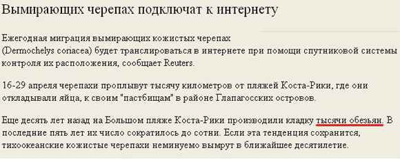 Alexandr с помощью издания "Лента" выяснил, почему вымирают черепахи. Потому что кладку за них делают обезьяны.