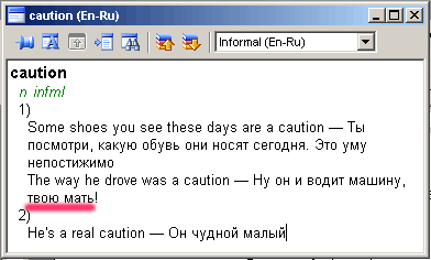 Algo изучал словарь "Лингво" и нашел весьма оригинальное толкование термина caution.