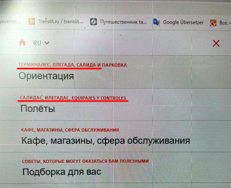 Макс слегка фигеет от сайта нового, изрядно скандального берлинского аэропорта. Раздел на русском - свеж и прекрасен. А вот что там делают чисто испанские термины, написанные по-русски и один раз по-испански, это науке пока неизвестно совершенно.