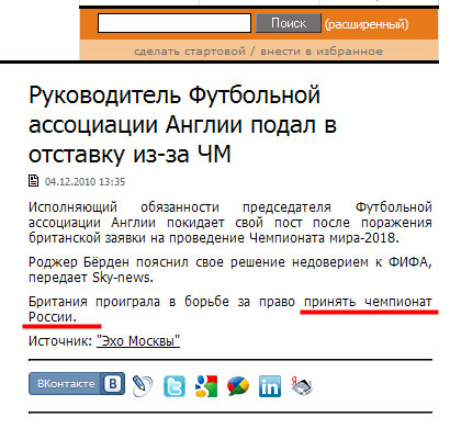Британия, рассказал Евгений, проиграла в борьбе за право принять чемпионат России по футболу. Они так хотели, так хотели... А уж как наши футболисты хотели того же - и не передать!