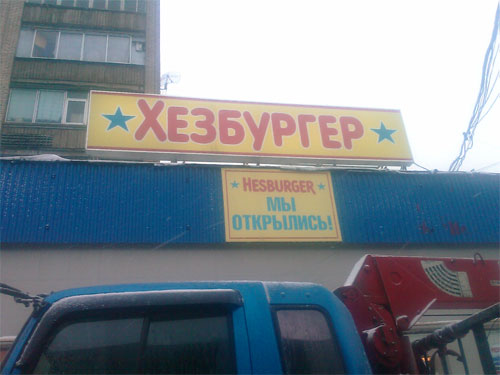 Прекрасное название выбрали эти люди для своей забегаловки, считает Андрей. Вся страна давно говорит на блатном языке, в котором "похезать" - синоним "сходить по-большому", так что "хезбургер" обязательно станет пользоваться в городе повышенной популярностью! Непременно!