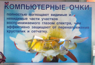 Наконец-то компьютерные очки, радуется Сергей, которые реально защищают глаза! Раз они поглощают видимые и невидимые части участков спектра, значит, в них не видно ничего! Глаза будут в полной сохранности!