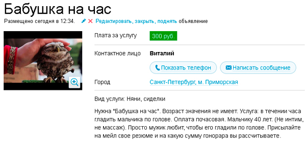 Марат прислал чудесное объявление, где я подпишусь под каждым словом!