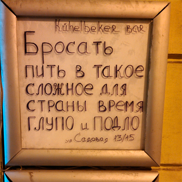 Зазывалка бара "Кюхельбекер" весьма сильно смахивает на пропаганду алкоголя.