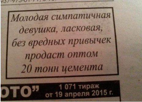 "девушка продаст цемента" - задайте (без кавычек) фразу в гугле, узнаете много нового про этот "классный креатив"