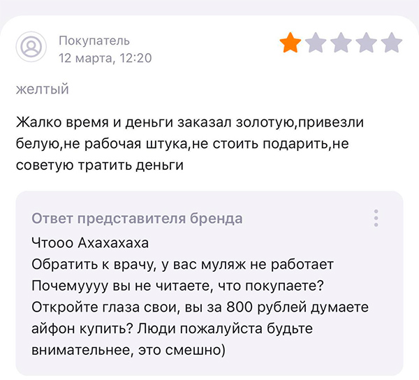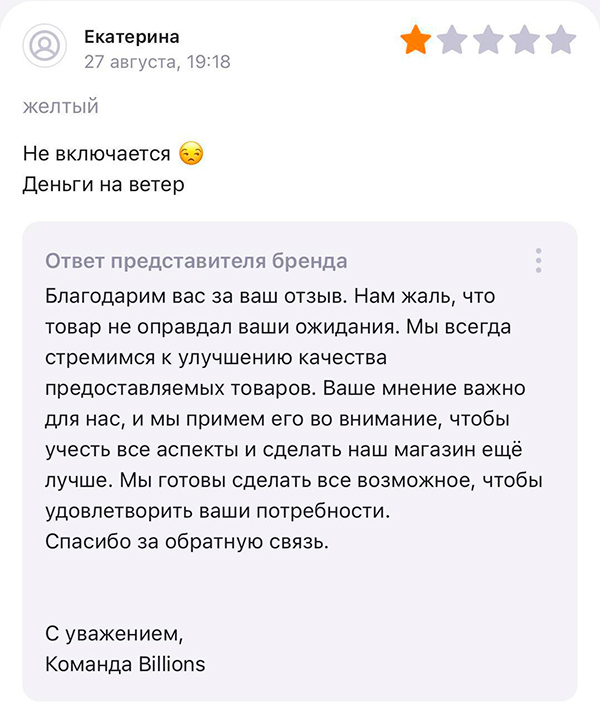 Но потом представители бренда все-таки поняли, что у них что-то не то с клиентоориентированностью, и стали отвечать уже нормально.