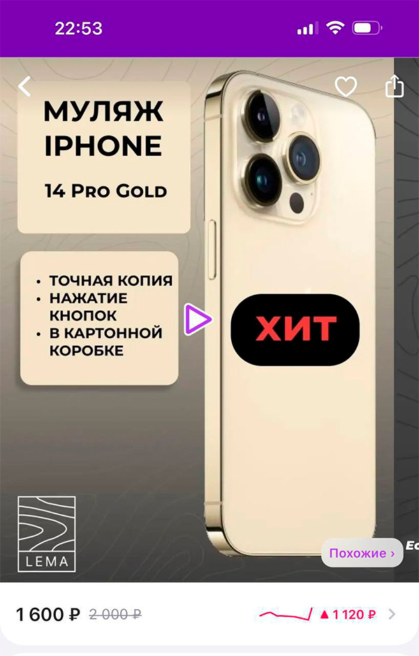 Продается вот такой муляж iPhone за 1600 рублей.
