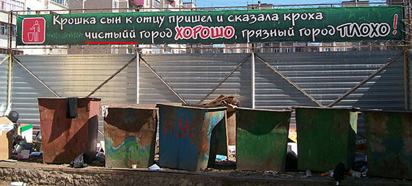 Так старались, что даже "й" продублировали. Но зато баки с мусором вывезти забыли - это у них бывает. Все силы уходят на рисование плакатов.
