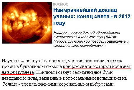 Господи, радуется Павел, неужели в 2012 году наконец-то по всей планете исчезнут придурки, которые каждый год нас пугают "концом света"?!!
