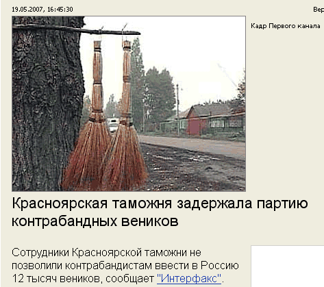 Благодаря бдительности таможни, радуется Олег Колдин, был спасен рынок российских веников. Иначе швах. Рынок бы немедленно рухнул, и производителям пришлось бы переквалифицироваться на валенки.