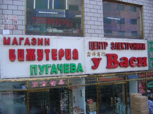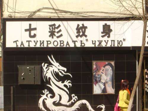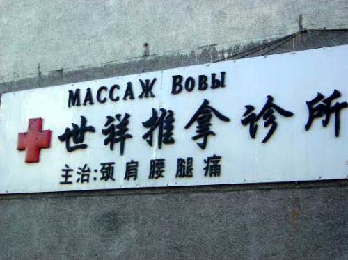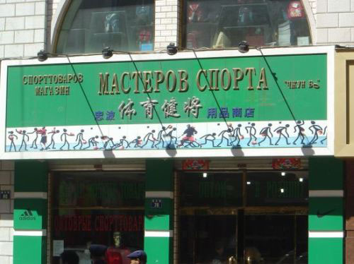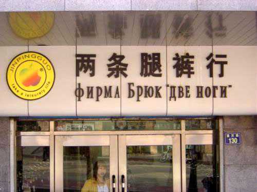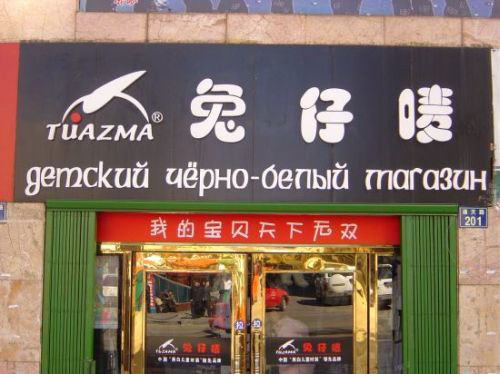 Первым делом, конечно, шопинг. Но названия для русскоязычных туристов должны быть узнаваемы, а кроме того, китайцы все-таки сомневаются в том, правильно ли они написали слова на вывеске, поэтому обязательно ставят какую-нибудь простую, но доходчивую ассоциацию. Например: