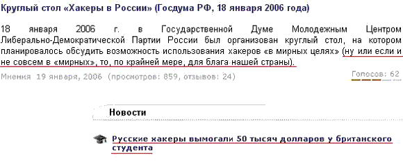 Круглый стол по использованию хакеров в военных целях, о котором орали элдепы на прошлой неделе, видать, состоялся, сообщил Duzk. Первая ласточка уже в действии.