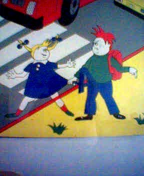 Как хорошо видно из рисунка, четырехпалая девочка расплющена по асфальту. Совсем. Чем ее так расплющило? Коноплей, которая растет на обочине. Обдолбанный мальчик тянет девочку за платье и предлагает еще курнуть, потому что нас плющит - а мы пыхаем!