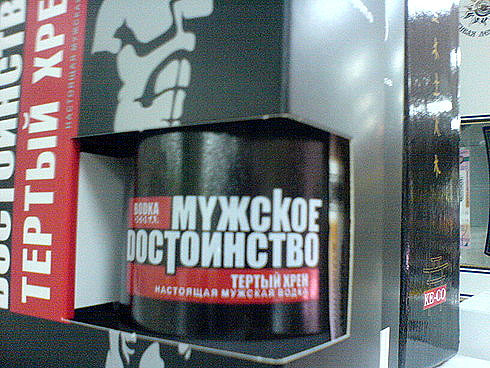 Вот такую нынче водку у нас продают, грустит Энергет. "Мужское достоинство тертый хрен". Ни хрена себе достоинство! Это кто ж такой умный пиарщик-маркетолог, а?