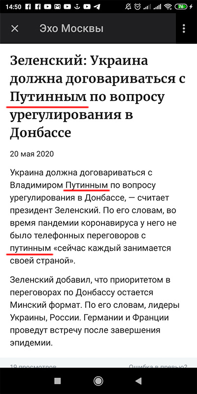 Александр пытается понять, с каким-то таким Путинным должен встретиться Зеленский на "Эхе Москвы".