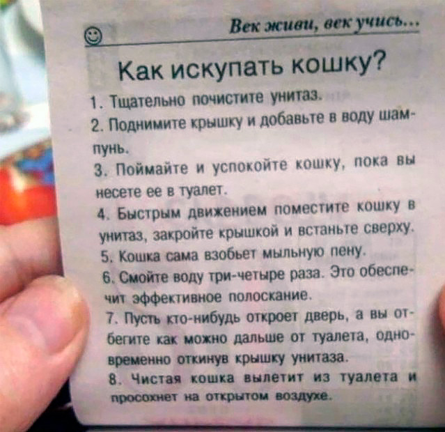 Это я к тому, что народ совсем от корней отрывается: в инструкции про кошку обрезали самое главное.