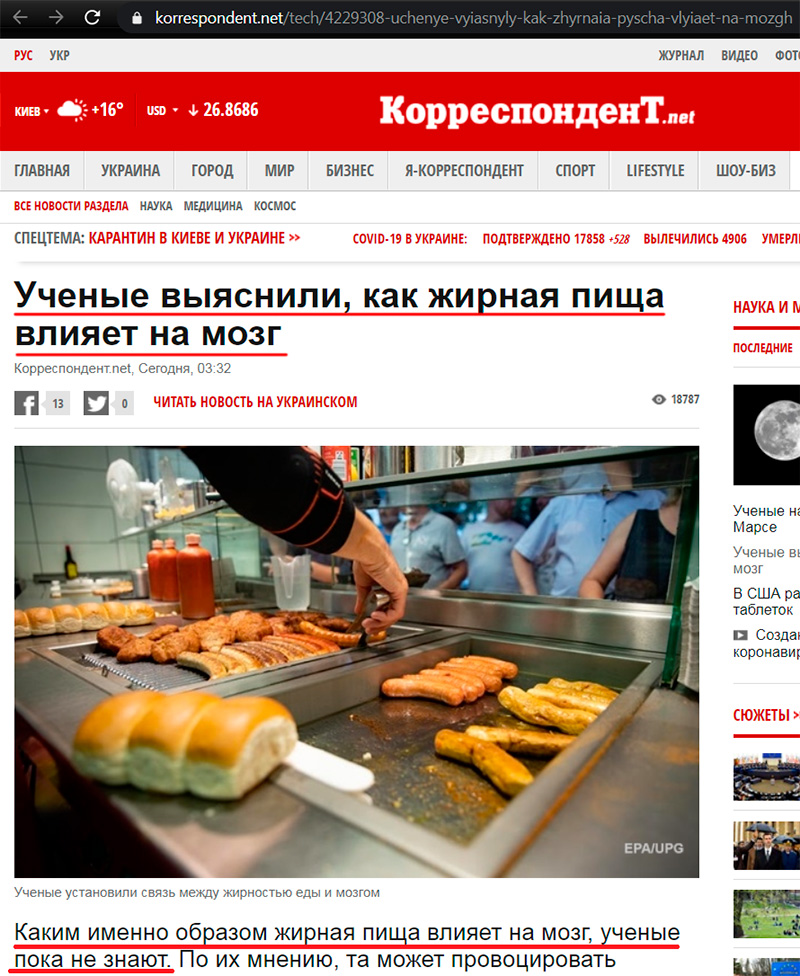 Про жирную пищу всё нормально, выяснили что происходит с мозгом, но не выяснили механику влияния.