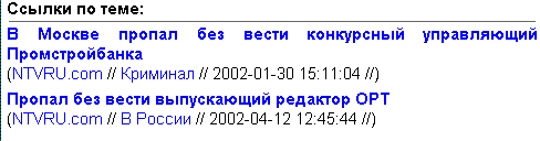 Игорь Черский читал статью "В Москве пропадают девочки-подростки" на NTVru.com и вдруг обратил внимание на довольно своеобразные ссылки по теме к этой статье: