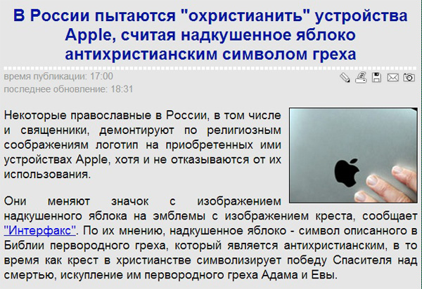 История с Эпплом похожа на фейк, а если нет, то это уже на грани бобра и осла. ))) Хотя смешно. Алексей Борисович, вы обещали рецензию на "Прометей". Или пошутили?