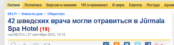 Евгений прислал радостную новость. 42 шведских врача, 123 норвежских лесоруба и 250 китайских школьников могли отравиться в Jurmala Spa Hotel, если бы они туда приехали. Но они не приехали. Ура!
