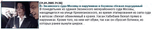 Заятсъ рассказал об очень интересных событиях, произошедших во время недавнего суда над Майклом Джексоном, который проходил в Зюзинском районе столицы...