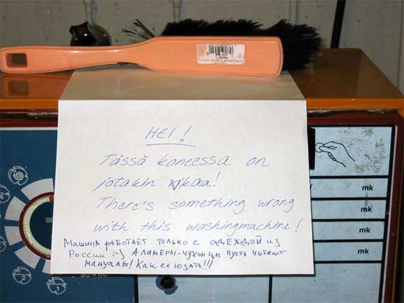 Финляндия, общежитие, общественная прачечная. Эти финны вывесили свои инструкции, сообщил Yaroslav Karulin. Но наши хлопцы теряться не собирались!