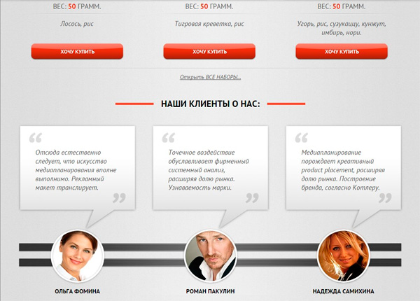 А зря Сергей раздумал. Эти "отзывы клиентов" изначально содержатся во многих шаблонах сайтов. Потом владельцы сайтов вручную переписывают эти тексты, превознося себя до небес от имени совершенно вымышленных персонажей. А иногда и не переписывают, если совсем ленивые, как эти суши-сашими.