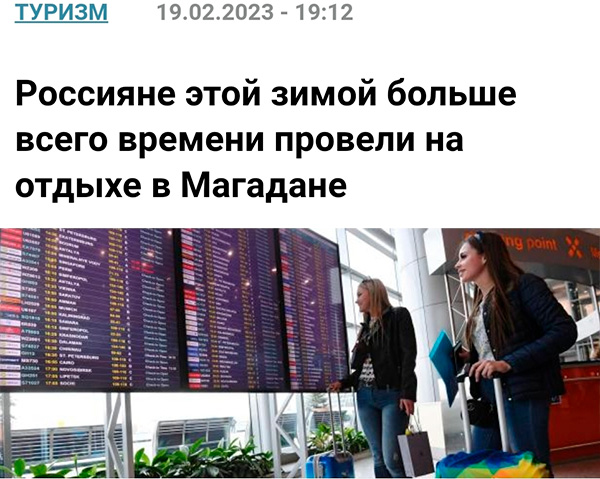 А зря, между прочим, этой зимой россияне как раз больше всего в Магадане и отдыхали. Там зимой всего-то от -20 до -30. Знаете же, как сказал поэт: "Мороз и солнце, день чудесный, еще ты дремлешь, сука в ботах".