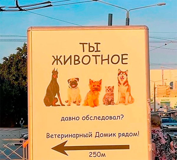 Вот ведь безграмотные какие, грустит Денис. Слово "животное" должно выделяться запятыми. Грамотная фраза звучит так: "Ты, животное, домашнего любимца давно обследовал"?