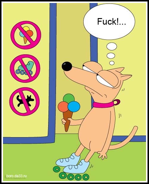 Очевидно, замечает кот Бублик, что собакам в этом парке запрещено кататься на скейте, куря и выпивая