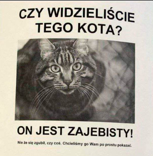Объявление на польском, рассказала Евгения. "Не то, чтобы он потерялся или что-то в этом роде. Мы просто хотели его вам показать. Он просто офигенный".